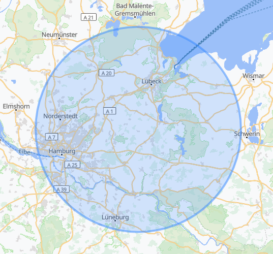 Ich wohne im schönen Kreis Herzogtum Lauenburg in Schleswig-Holstein und fahre zu dir in den Stall in einem Umkreis von bis zu 100 km ab 23896 Nusse.